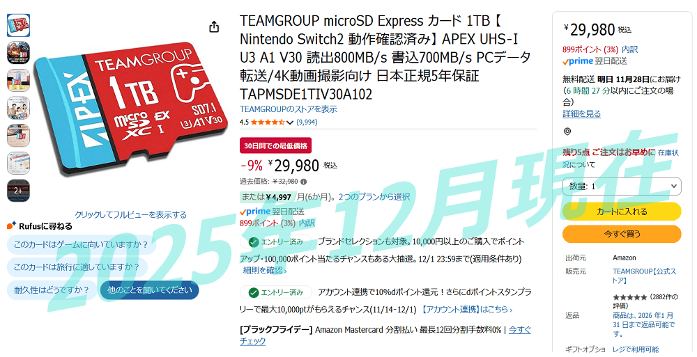 Nintendo Switch 2の拡張ストレージとしても話題のmicroSD Express メモリーカード「TEAMGROUP APEX SD7.1 MicroSD Express メモリーカード 1TB」をレビューします。