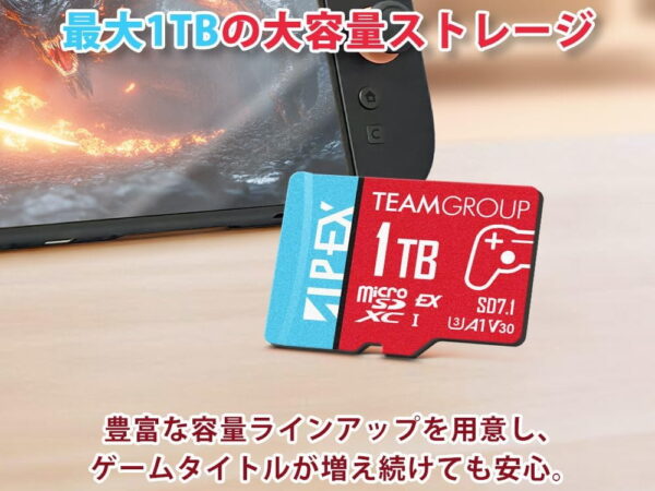 1TBや512GBの大容量モデルもラインナップされる「TEAMGROUP APEX microSD Express」ならその役割を十分に果たせます。