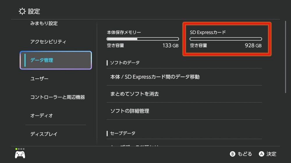 SD Expressカードはゲームのインストール先だけでなく、キャプチャーボタンで撮影したスクリーンショットや動画を直接保存する場所としても指定できるので、最も高速な本体保存メモリーを圧迫しないことが最大の役割であり、導入するメリットです。