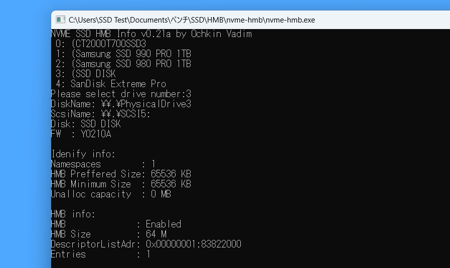 Switch 2で使用した時にどうなるかは分かりませんが、M.2変換ボードを介してPC上で使用した場合、HMB(Host Memory Buffer)に対応していました。