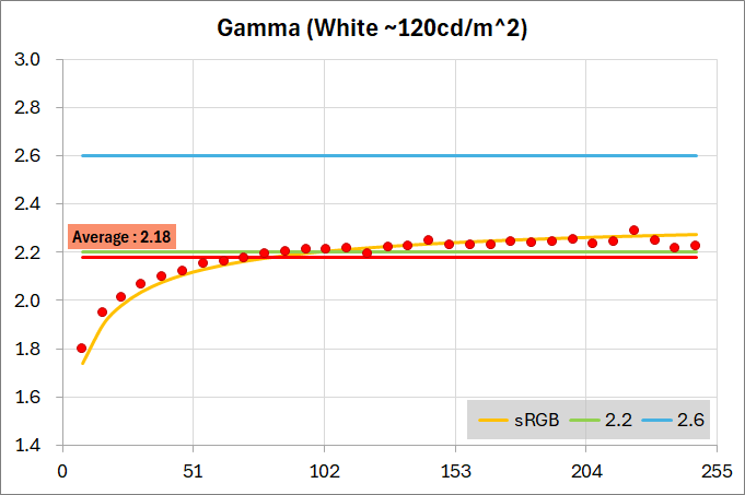 - 日本人受けしやすい7600K程度の寒色寄りな色温度
