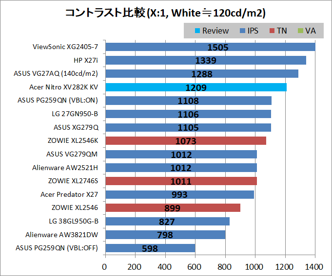 Acer Nitro XV282K KVの発色・輝度・視野角