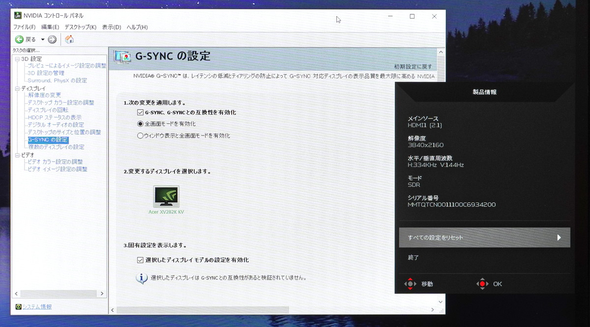 8.Acer Nitro XV282K KVのFreeSync/G-Sync CPについて