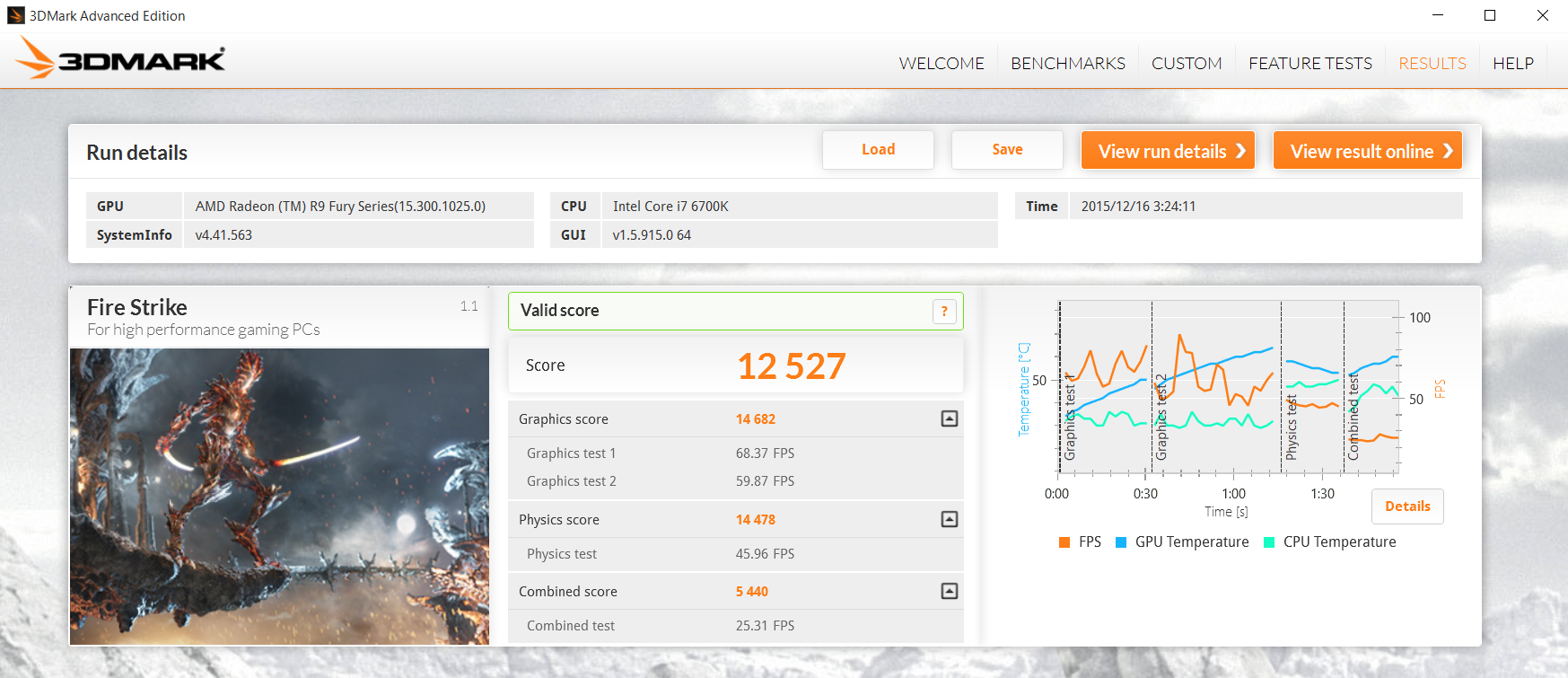 FireStrikeではGTX980が13000程度なのに対してNANOは14500程度と圧倒しています。