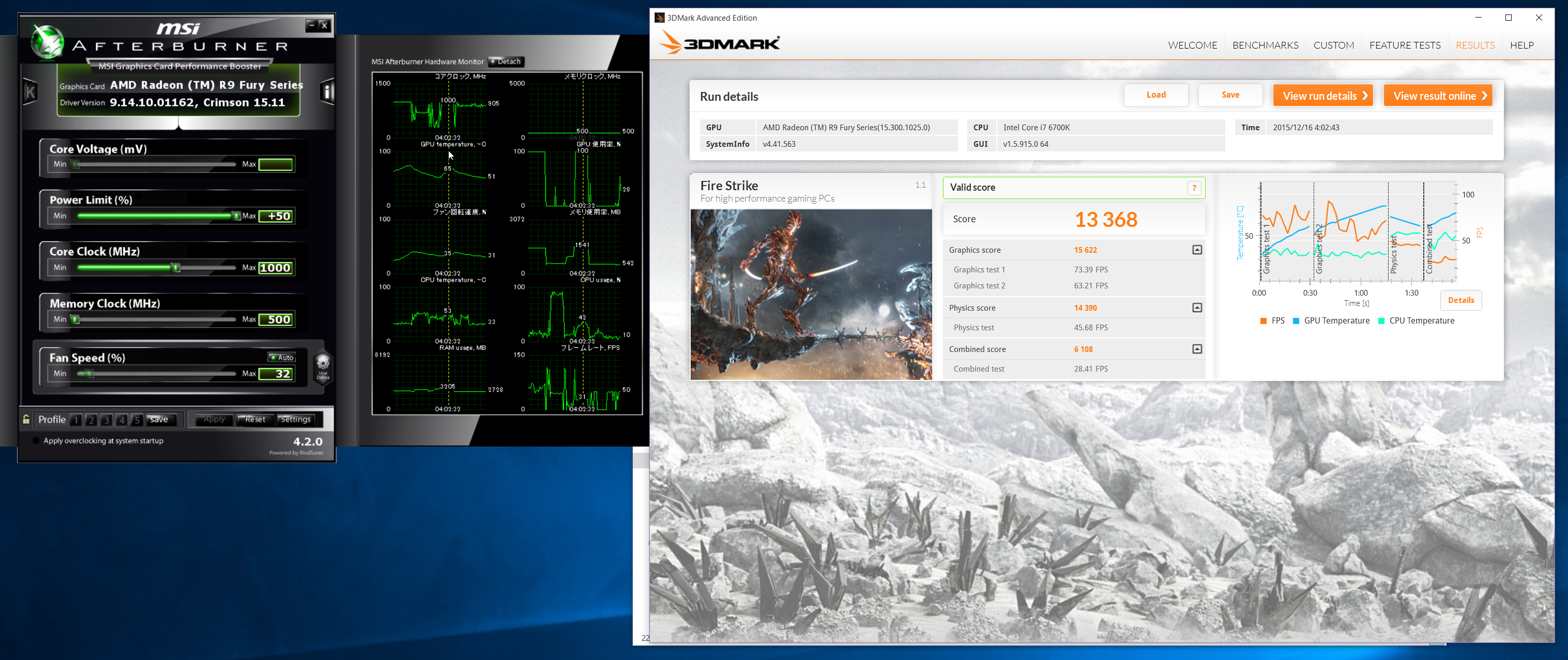 FuryXの定格スコアが16000程度なので、NANOをOCすることでXにも迫ります。