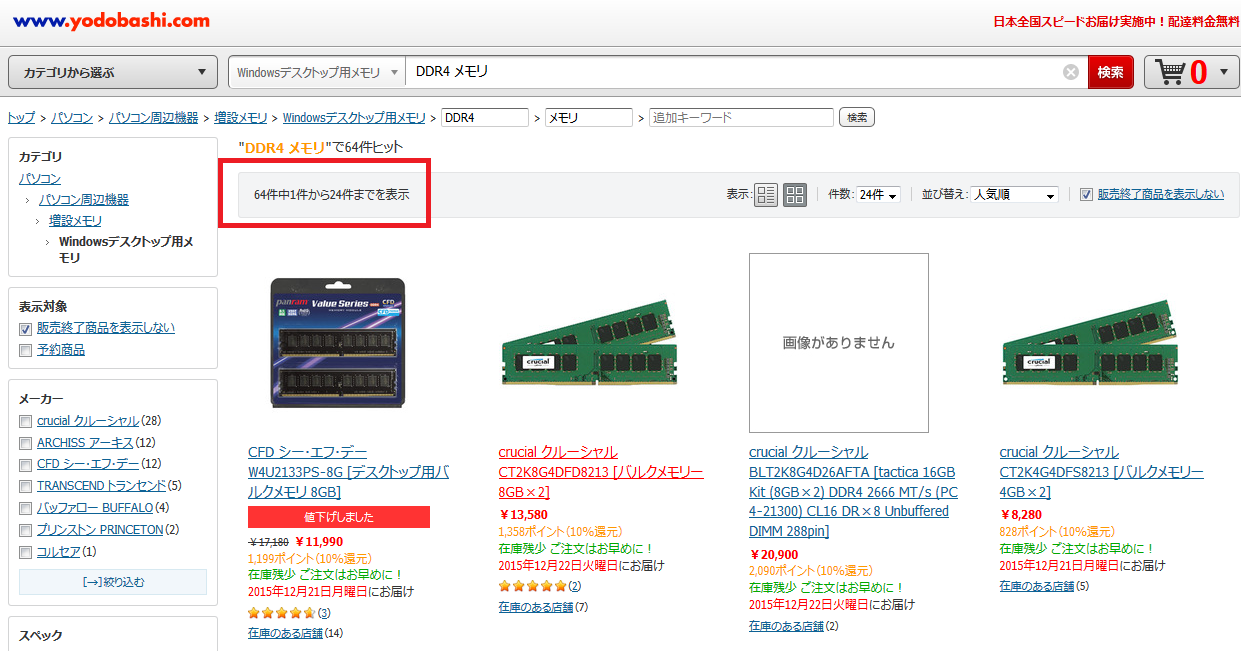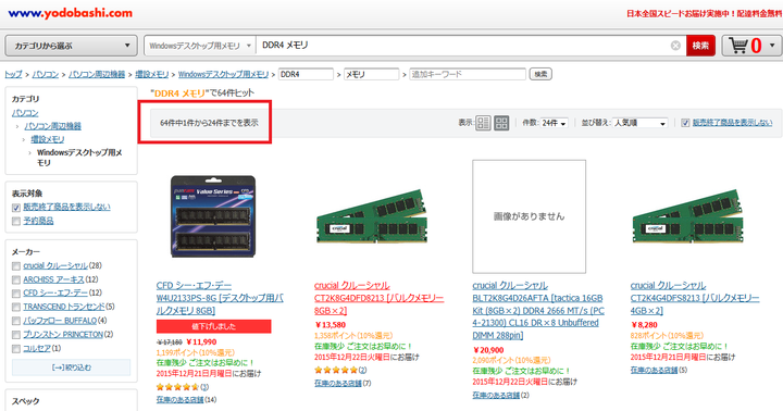 PCショップアークは圧倒的に他社よりも品数が多いのでDDR4メモリを探す上ではまず目を通したいショップだと思います。