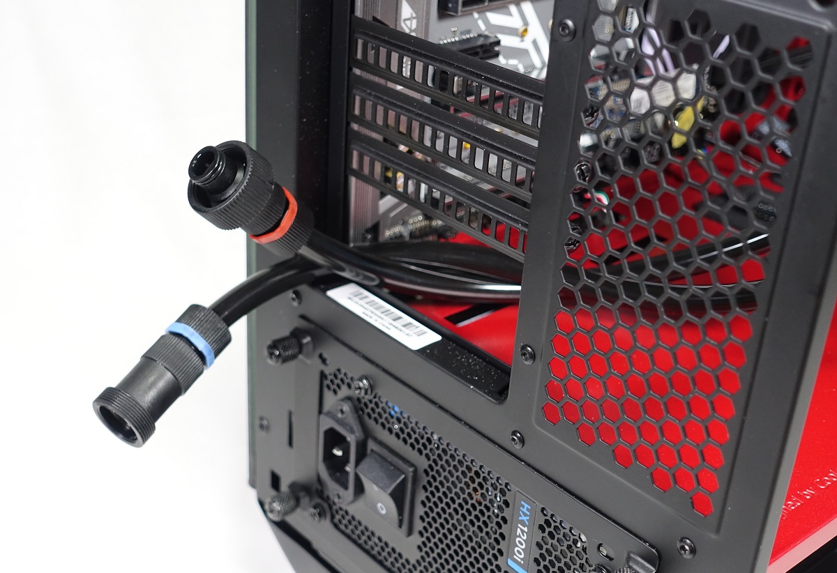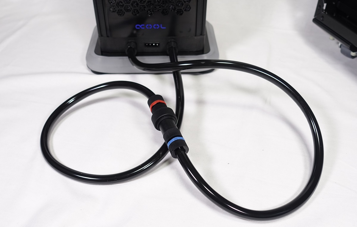 PCケースと水冷ユニットが別になっているので設置や移動において取り回しが悪いというイメージもあるかもしれませんが紹介したように、クイックリリースフィッティングを使用した水路の分断に対応しており、数滴のリークだけで容易に水路を分離することができるので、そういったデメリットも無視することができます。