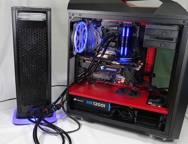 外付けの360サイズラジエーターであればメインストリームのi7 7700K OCはもとよりエンスー向けのIntel Broadwel-EやAMD Ryzen 7にも対応可能な放熱容量があります。付属品の水冷ブロックでも性能的には十分ではありますが、さらに上の冷却性能を目指す場合はCPU水冷ブロックの熱交換効率がボトルネックになると予想できるので、上位モデルの「Alphacool Eisblock XPX」や他社製品ですが「EKWB Supremacy EVO」や「Aquacomputer cuplex kryos NEXT」など別売りの高性能な水冷ブロックを別途購入して使用したいところです。