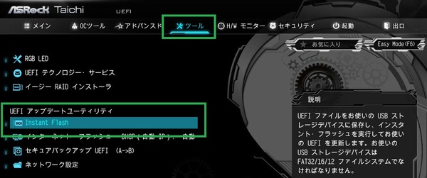 サポート:http://www.asrock.com/mb/Intel/X299 Taichi/index.jp.asp#BIOS
