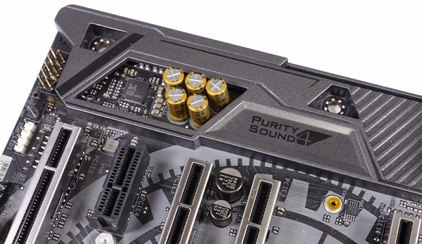 ASRock X299 Taichiはオンボードサウンドに「PURITY SOUND4」という高音質ソリューションが採用されています。アナログ出力はニチコン製オーディオ向けキャパシタやSN比120dBのDACなど高品質素子を採用し、7.1チャンネル HDオーディオに対応しており、デジタル出力でもオーディオ用の外部アンプ等との接続に最適な光デジタル端子が設置されています。