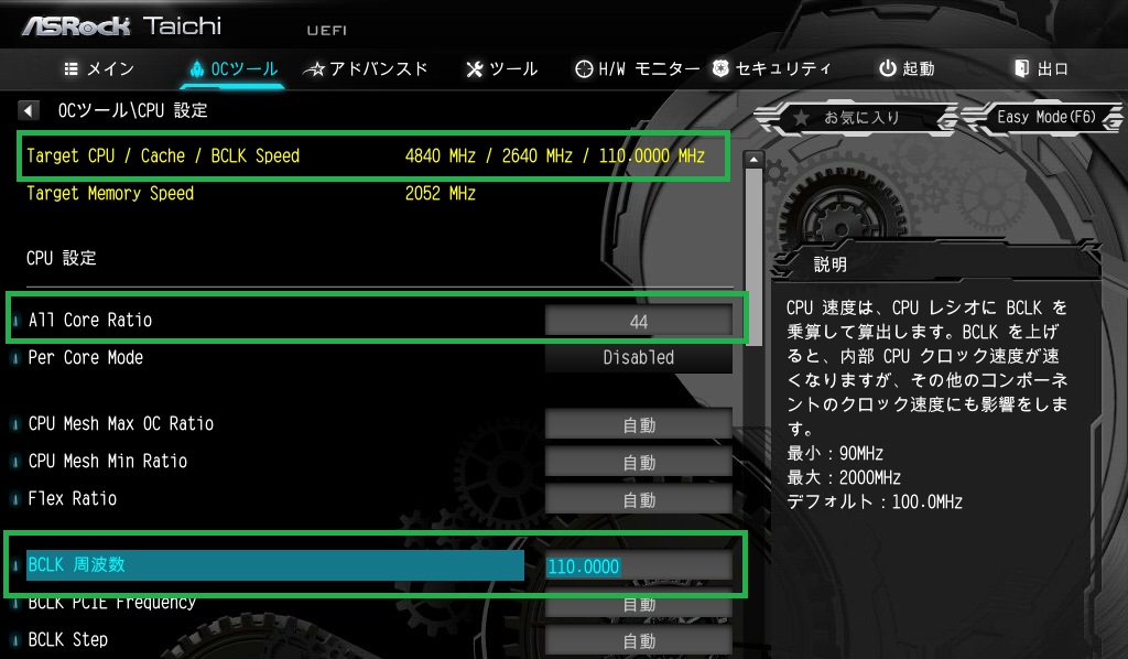 ASRock X299 Taichiは0.05MHzなのでOC上級者は注意が必要かも
