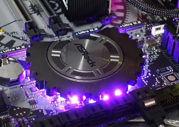 マザーボード基板右下にはPOSTエラーのチェックができるQ-Code LEDが設置されていますが、上位モデルのFatal1ty X299 Professional Gaming i9に実装されていたオンボードのスタート/リセットスイッチは省略されています。リアパネルにはCMOSクリアのハードウェアスイッチ実装されておりOC設定に失敗してもPCケースを開くことなくBIOSの設定をクリアできるので手動でOCを行うユーザーにとても便利です。