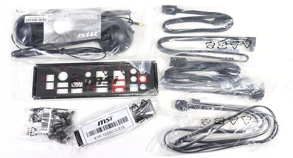 組み立てに関連する付属品としては、リアI/Oパネル、汎用4PIN LED用Y字分岐延長ケーブル、WiFiアンテナ、SATAケーブル4本、SLIブリッジ、3D X-MOUNTINGスクリュー(3Dプリンタパーツ固定用のネジ)です。