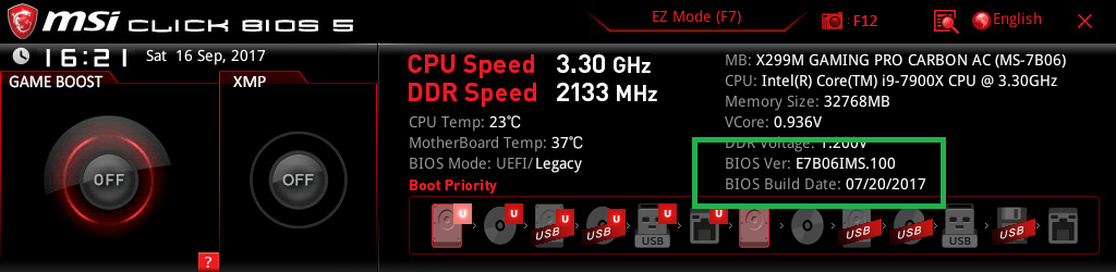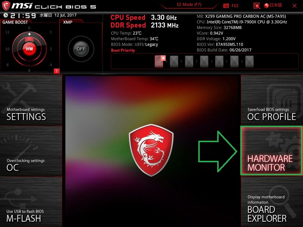 サポート:https://jp.msi.com/Motherboard/support/X299M-GAMING-PRO-CARBON-AC#down-bios