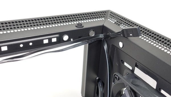 PCケース上部に備え付けられたLEDイルミネーションのケース前方端にはデイジーチェーンによる連結のための4PINヘッダーがあります。