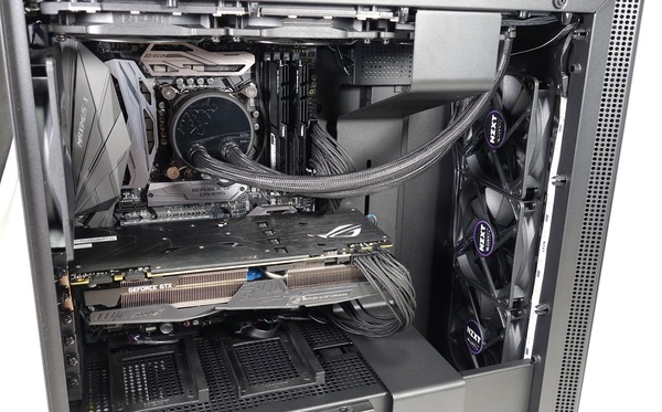 「NZXT H700i」はPCケースフロントに5インチベイやストレージマウンタがない今どきのミドルタワーPCケースなのでグラフィックボードの設置については特に問題が発生することはないと思います。