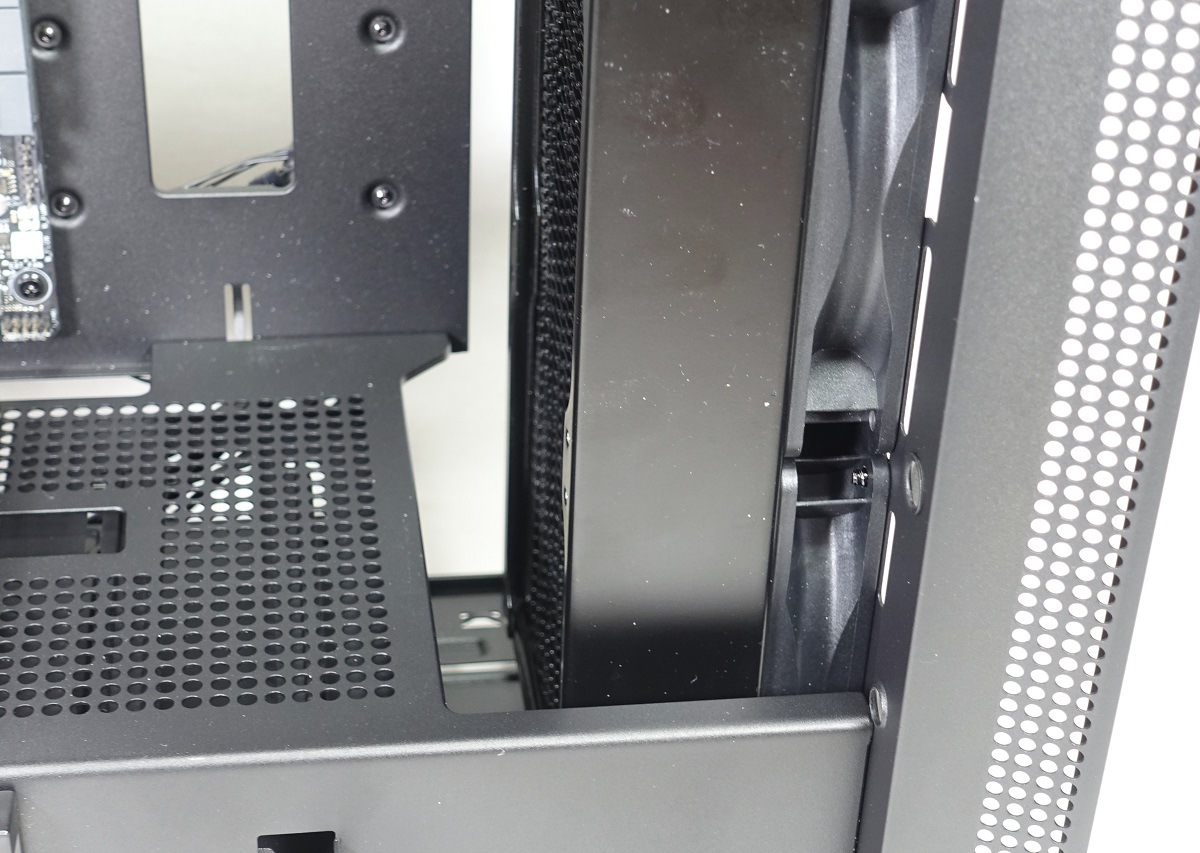 ラジエーターモードでは厚さのスペースを確保する必要があるので、ブラケットをトップパネルに近づけて、マザーボード上部からブラケットまでの距離を広くしています。