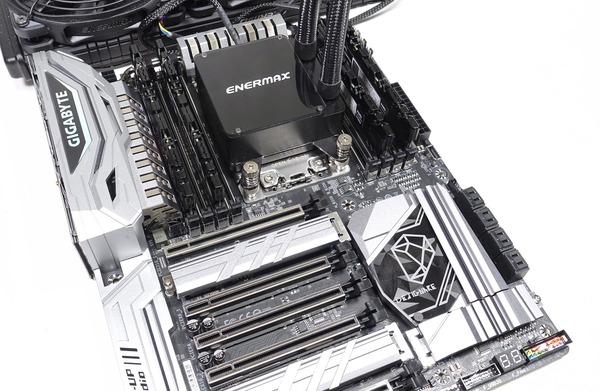 DDR4メモリには「G.Skill FLARE X F4-3200C14D-16GFX 2セット」(レビュー)、CPUクーラーには「ENERMAX LIQTECH TR4 ELC-LTTR360-TBP2」(レビュー)を使用しています。