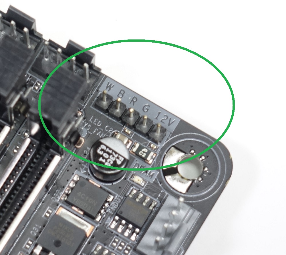 GIGABYTE X399 Designare EXには汎用LEDヘッダーとして、マザーボードメーカー各社が採用しているRGB 4PINではなく、白色LEDを搭載するRGBWに対応した5PIN LEDヘッダーが2基実装されており、それに対応した延長ケーブルが2本付属します。
