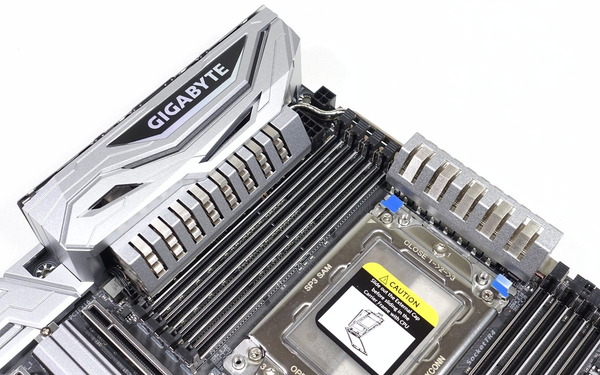 システムメモリ用のDDR4メモリスロットはCPUソケット両側に8基のスロットが設置されています。