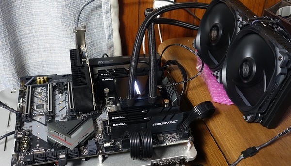 簡易水冷CPUクーラーはラジエーター設置の手間やスペース確保の問題はありますが、マザーボード上のメモリなどのコンポーネントとの干渉は大型のハイエンド空冷CPUクーラーより発生し難く、水冷トップの設置自体も基本的にツールレスで容易なのが長所だと思います。
