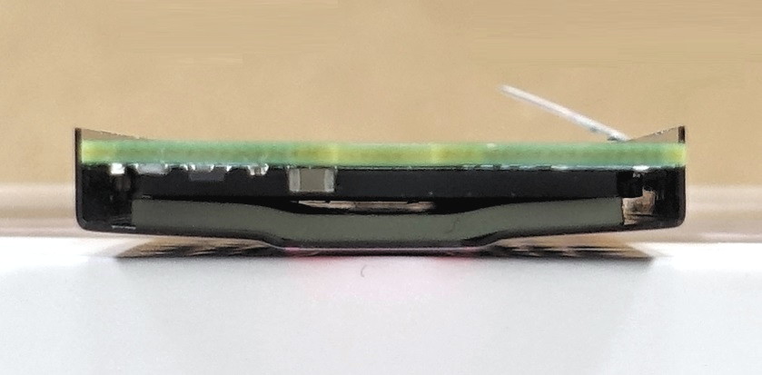 なおM9PeGに装着されたヒートシンクは薄いアルミ板を型に合わせて成型したものになっており上から見てわかるように中央が盛り上がる形で湾曲しているため、基板上素子と中央部分が接していません。この点については前モデルM8PeGでも言及されていたので、M9PeGでは改善しておいて欲しかったところです。