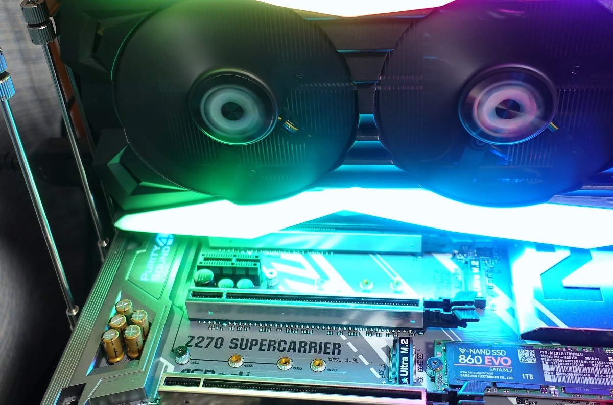 外観やハードのチェックはこのあたりにして早速、ZOTAC GAMING GeForce RTX 2080 AMP Extremeを検証用の機材に組み込みました。テストベンチ機の構成は次のようになっています。