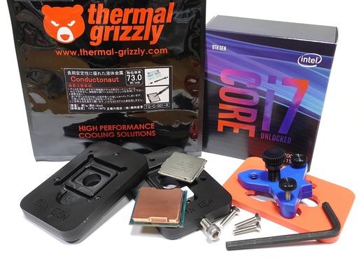 「Copper IHS for 9th Gen」を使用した際の温度差はそこまで大きいものではないので、第8世代以前での使用についてはオプションでお好きにというスタンスでしたが、第9世代はCPUダイとヒートスプレッダのSTIM除去作業のうちヒートスプレッダの除去作業が省略でき、手間暇が省けるので使用をおすすめしています。