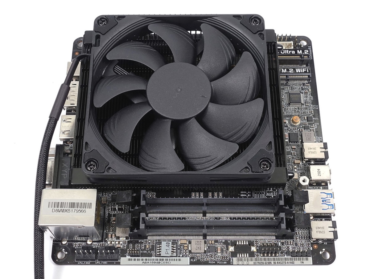 「Noctua NH-L9a-AM4 chromax.black」はASRock Deskmini X300のマザーボードともしっかり互換性があり、メモリやSSDとのクリアランスも問題ありません。