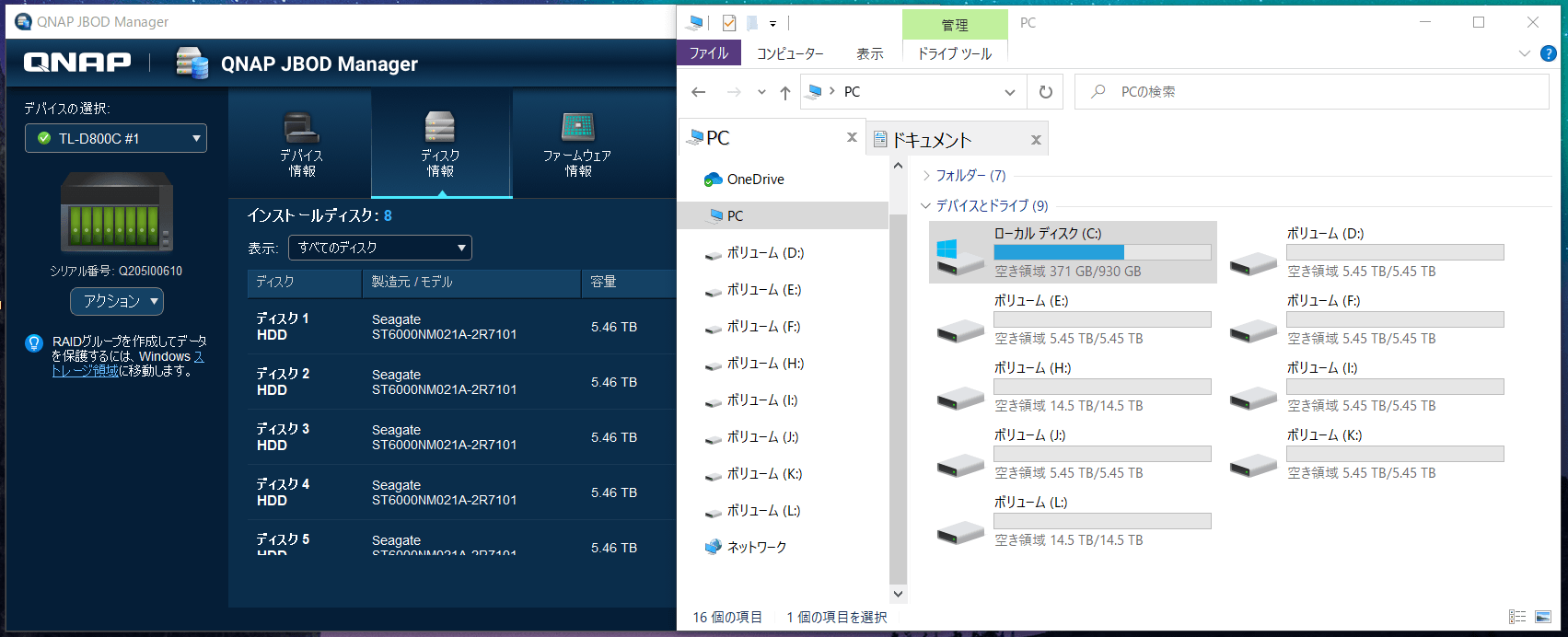 非常にあっさりとした内容ですが、以上で「QNAP TL-D800C / TL-D800S」を導入するための初期設定は完了です。面倒な設定は必要なく、「QNAP TL-D800C / TL-D800S」に設置したストレージはWindows PCから正常に認識されます。