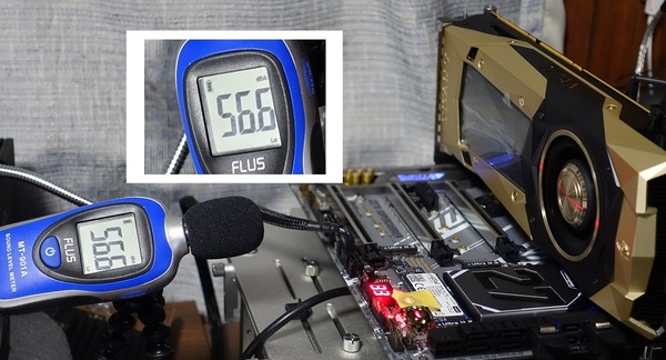 NVIDIA TITAN Vを含めていくつかのグラフィックボードについてサウンドレベルメーターを利用してゲーム負荷時のノイズレベルを測定・比較しました。ノイズレベルの測定には「サンワダイレクト 400-TST901A」を使用しています。
