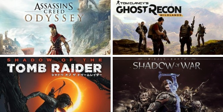 CPU別ゲーミング性能の比較には18年最新PCゲームから、Assassin's Creed Odyssey、Tom Clancy's Ghost Recon Wildlands、Shadow of the Tomb Raider、Middle-Earth: Shadow of War、PLAYERUNKNOWN'S BATTLEGROUNDS(PUBG)の5種類を使用しています。60FPSの標準フレームレートをターゲットとした4K(3840×2160)解像度/高画質設定と、100FPS以上のハイフレームレートをターゲットとしたフルHD(1920×1080)解像度/中画質設定の2種類について、各ゲームで平均フレームレートと最小フレームレートを測定しました。