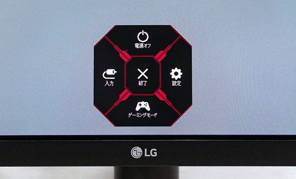 「LG 27GL850-B」のOSD操作はモニタ底面に配置された操作スティックを使用します。