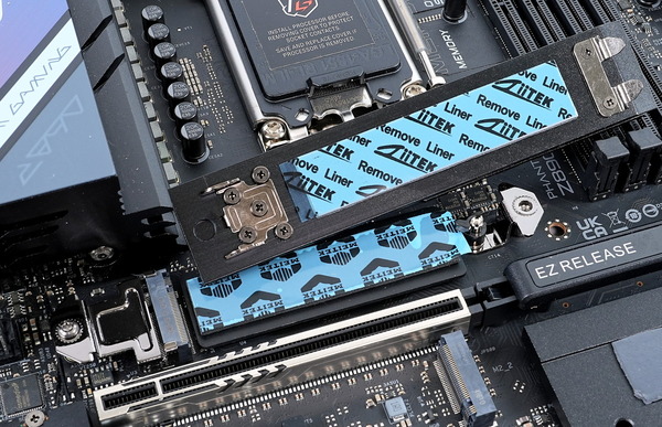 「ASRock Z890 Nova WiFi」にはチップセットとM.2 SSDのヒートシンクを兼ねたマザーボード下側全体を覆う金属製カバーが搭載されています。