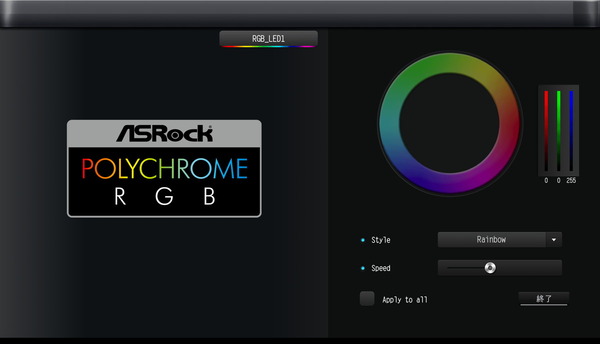 Windows上ソフトウェアからASRock Polychlome RGB Syncのエコスステムに対応する他のイルミネーション機器と同期制御する等の詳細設定も可能ですが、「ASRock Z890 Nova WiFi」はマザーボード上のイルミネーション機器だけならBIOSから簡易的に発光カラーや発光パターンを変更できます。完全に消灯させることも可能です。