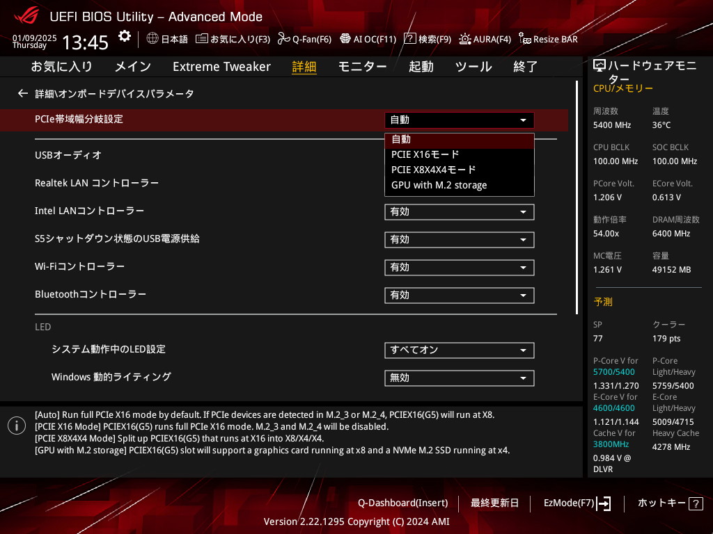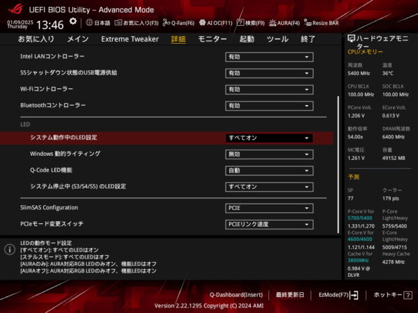 「ASUS ROG MAXIMUS Z890 HERO」に搭載されたイルミネーション機器はWindows 11 23H2以降でOS統合された”動的ライティング”というライティング制御機能にも対応しています。動的ライティングで制御したい場合はBIOSから設定を有効化してください。