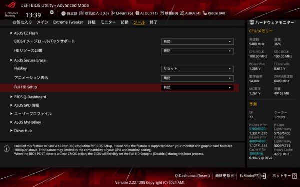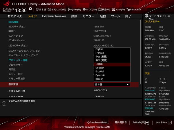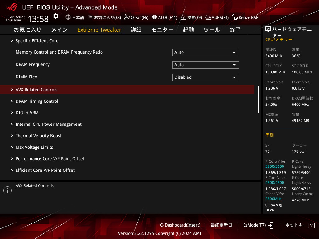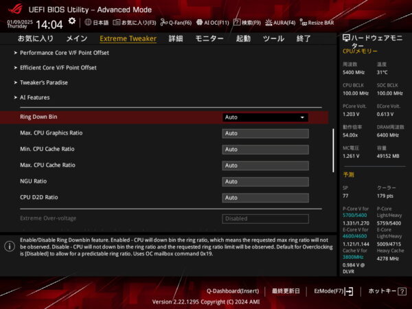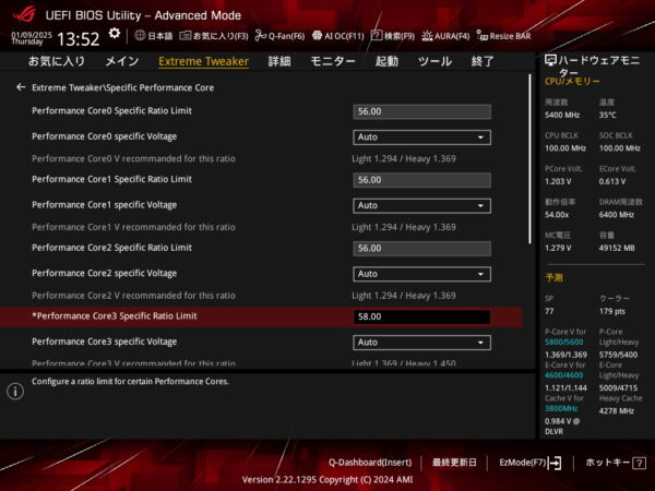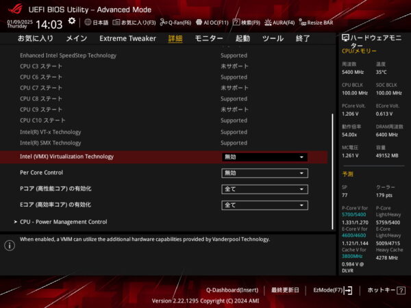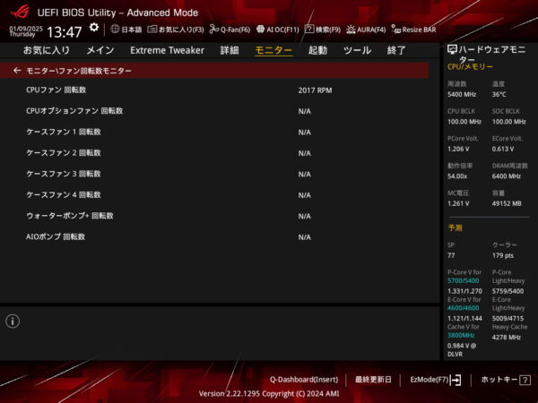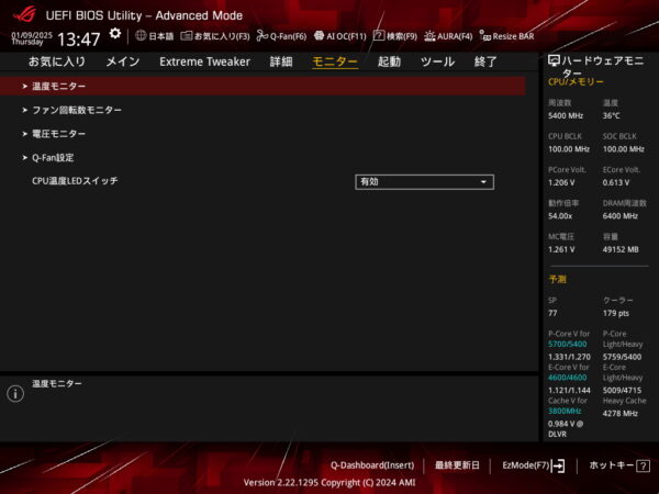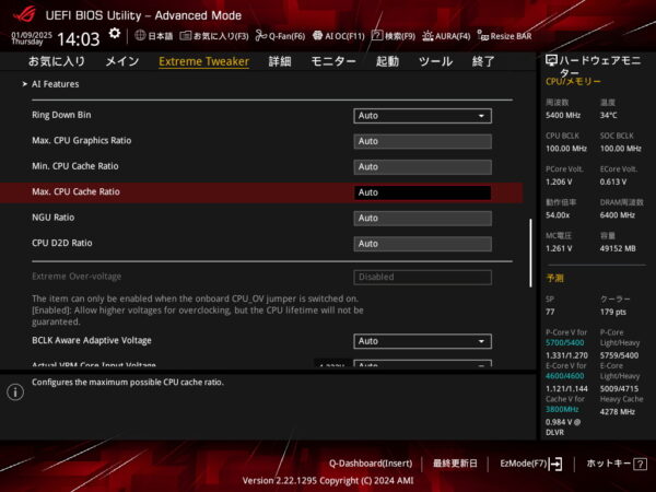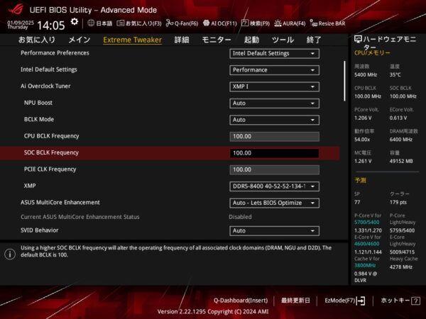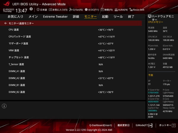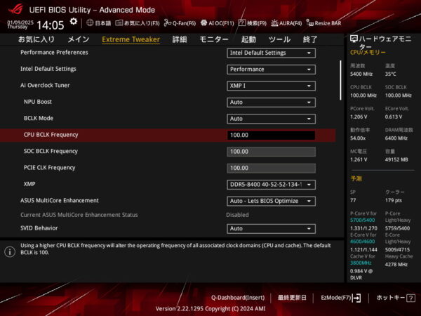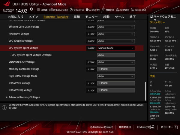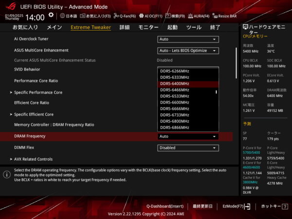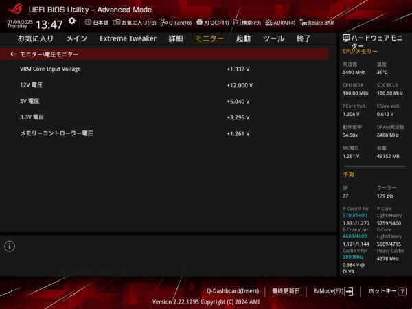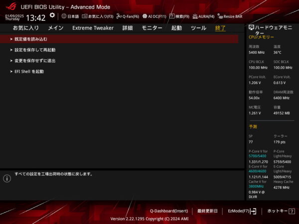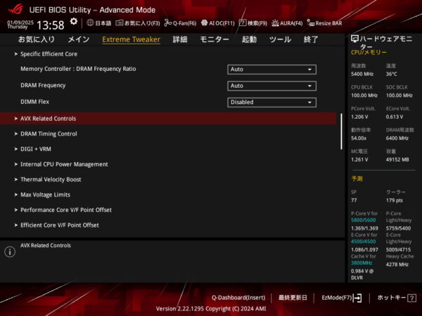 先日レビューした同社製マザーボード エントリークラスの「ASUS Z890 AYW GAMING WIFI W」は8400MHzのメモリOCが安定動作しましたし、ハイエンド帯で競合する他社製品も安定動作だったので、今回の結果は正直なところ残念です。