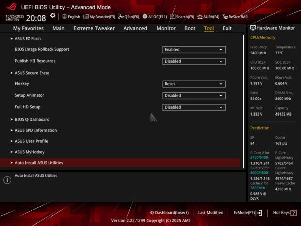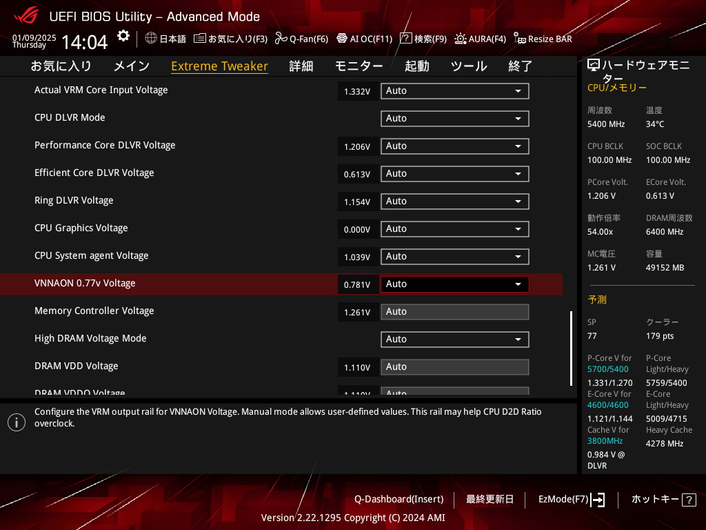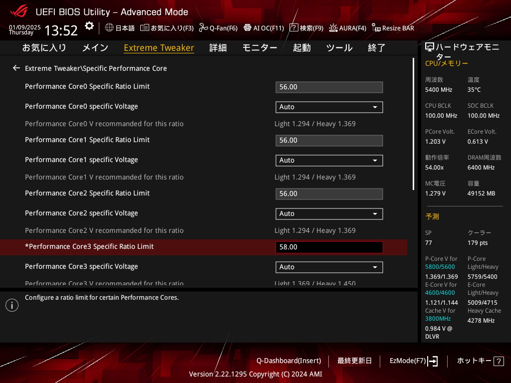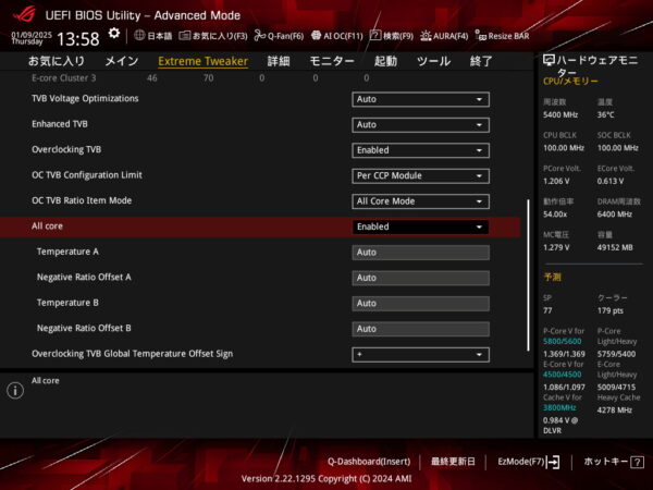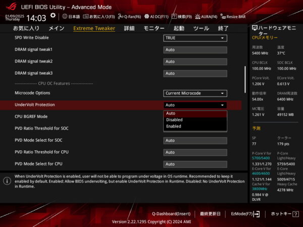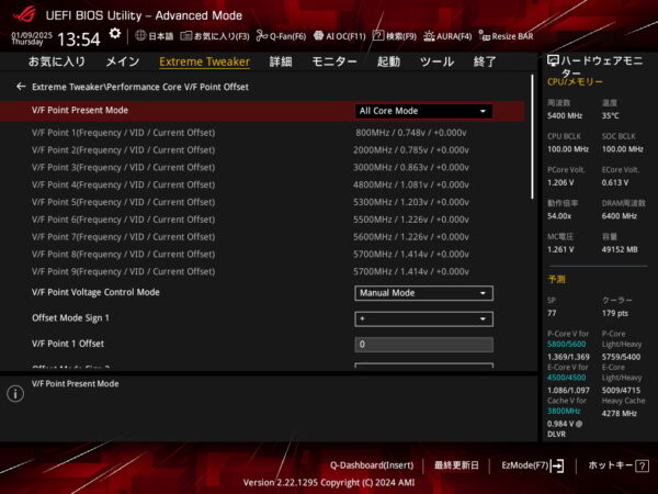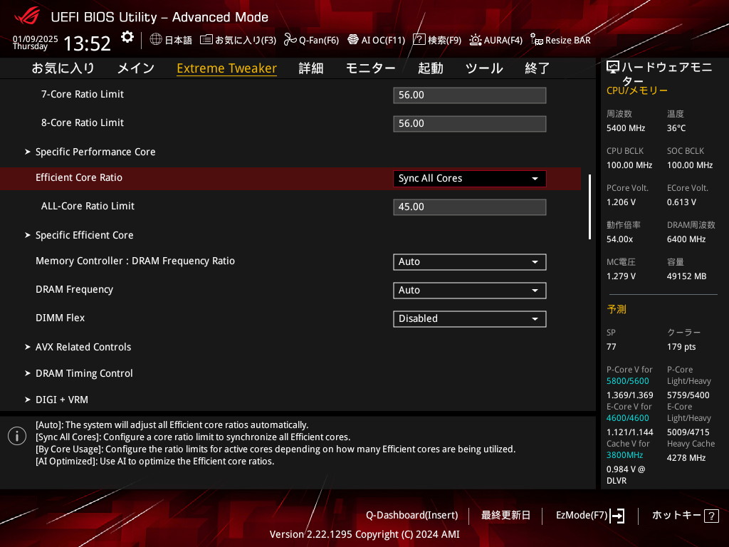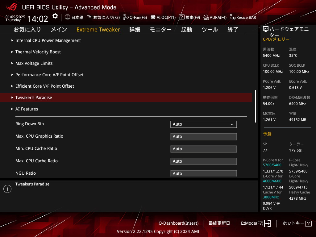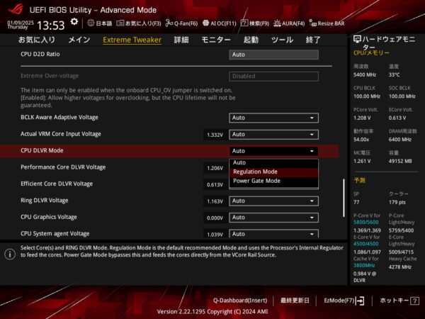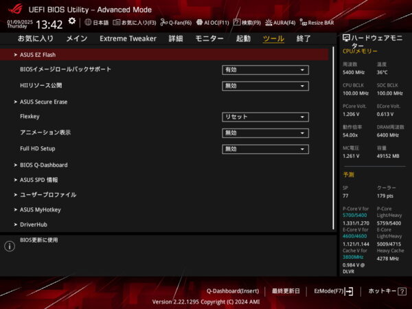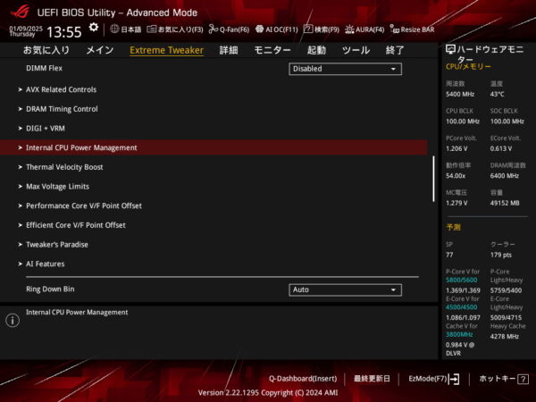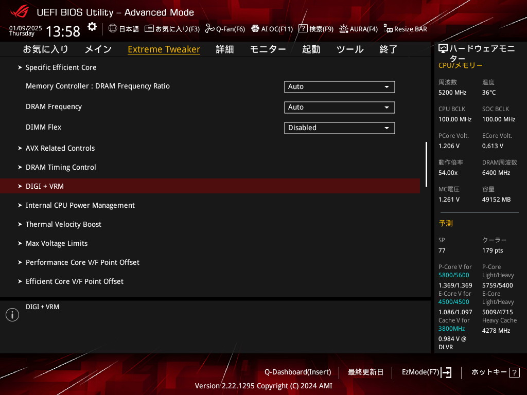 先日レビューした同社製マザーボード エントリークラスの「ASUS Z890 AYW GAMING WIFI W」は8400MHzのメモリOCが安定動作しましたし、ハイエンド帯で競合する他社製品も安定動作だったので、今回の結果は正直なところ残念です。