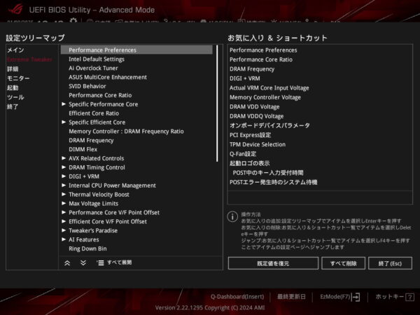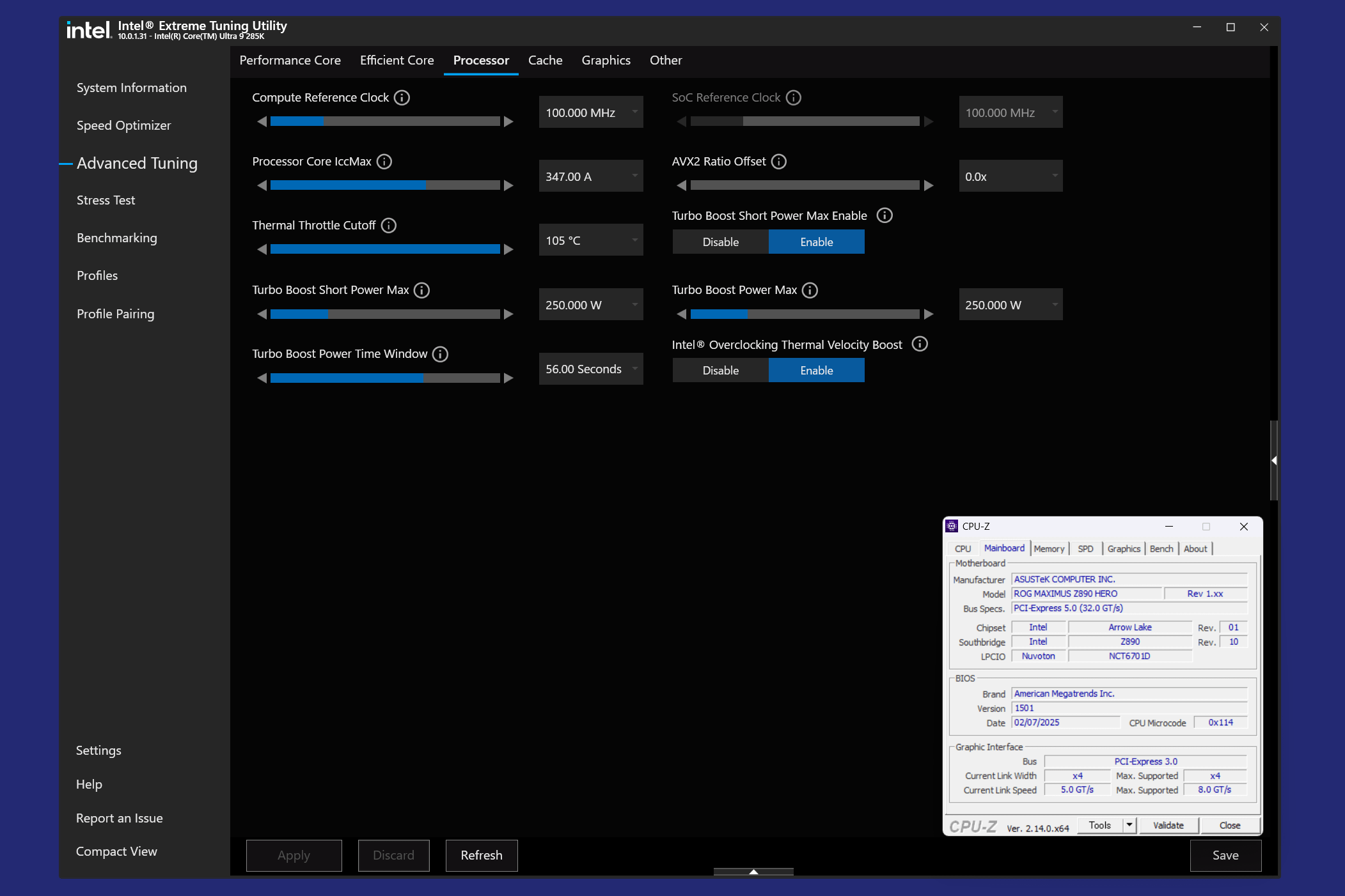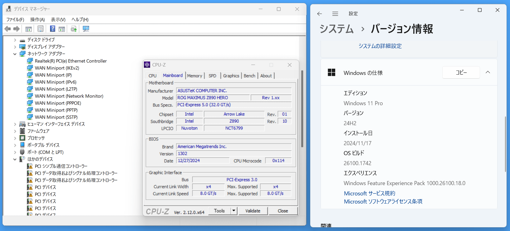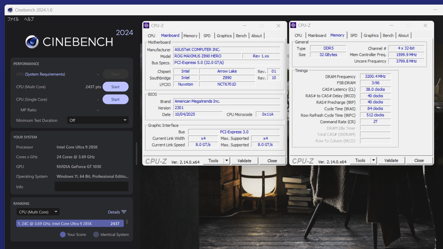 | ASUS ROG MAXIMUS Z890 HERO Core Ultra 9 285Kの標準動作設定 | ||