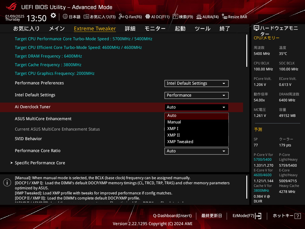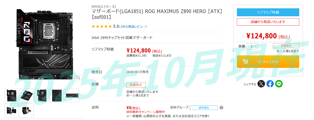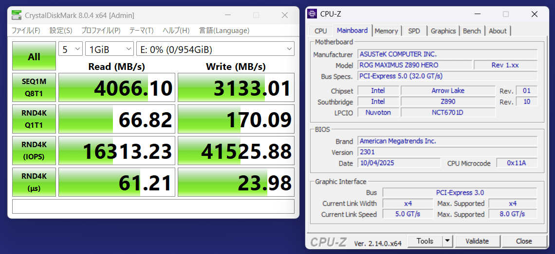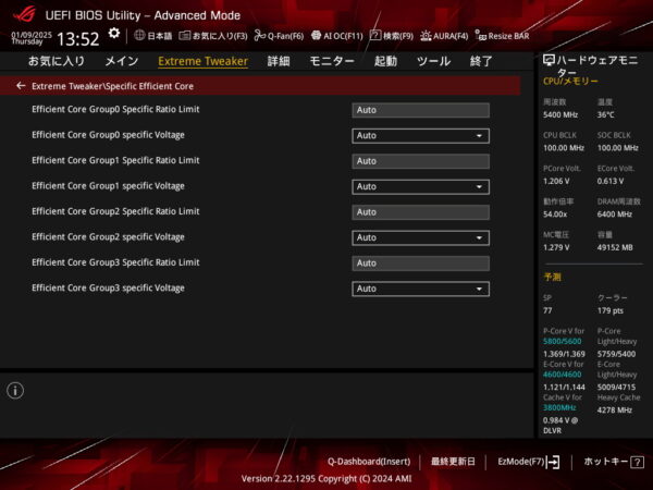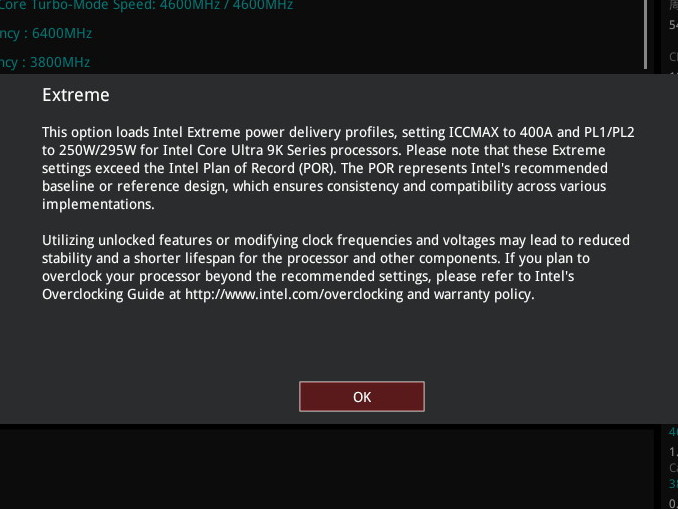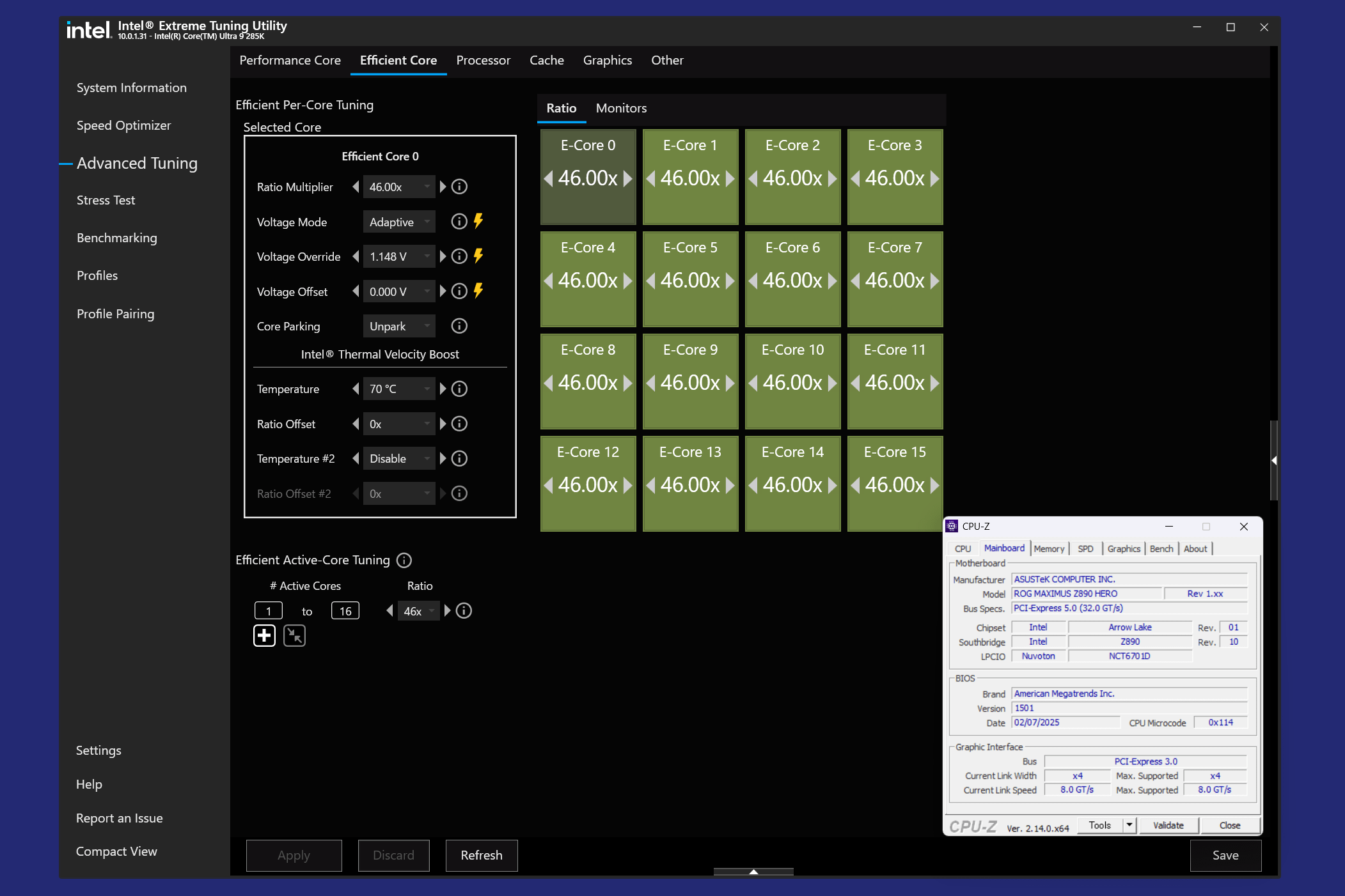 | ASUS ROG MAXIMUS Z890 HERO Core Ultra 9 285Kの標準動作設定 | ||