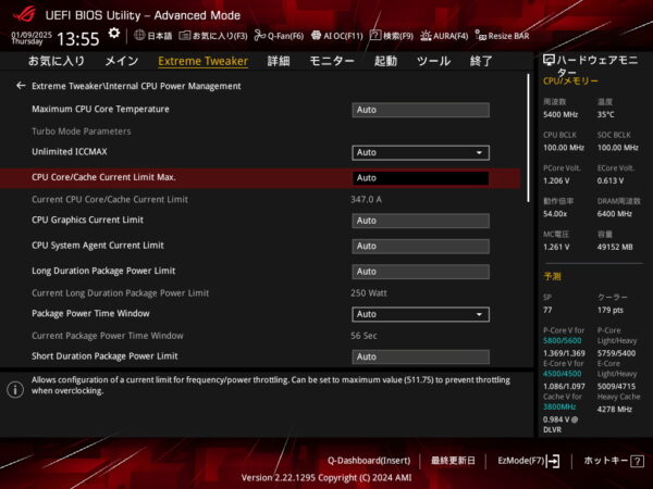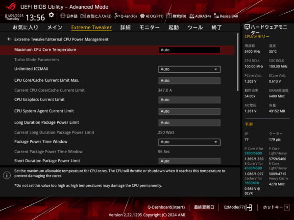 360サイズAIO水冷CPUクーラーのように十分に冷却性能の高いCPUクーラーを組み合わせれば、CPU定格の 電力/電流制限の範囲内なら臨界温度 105度以下で運用可能です。