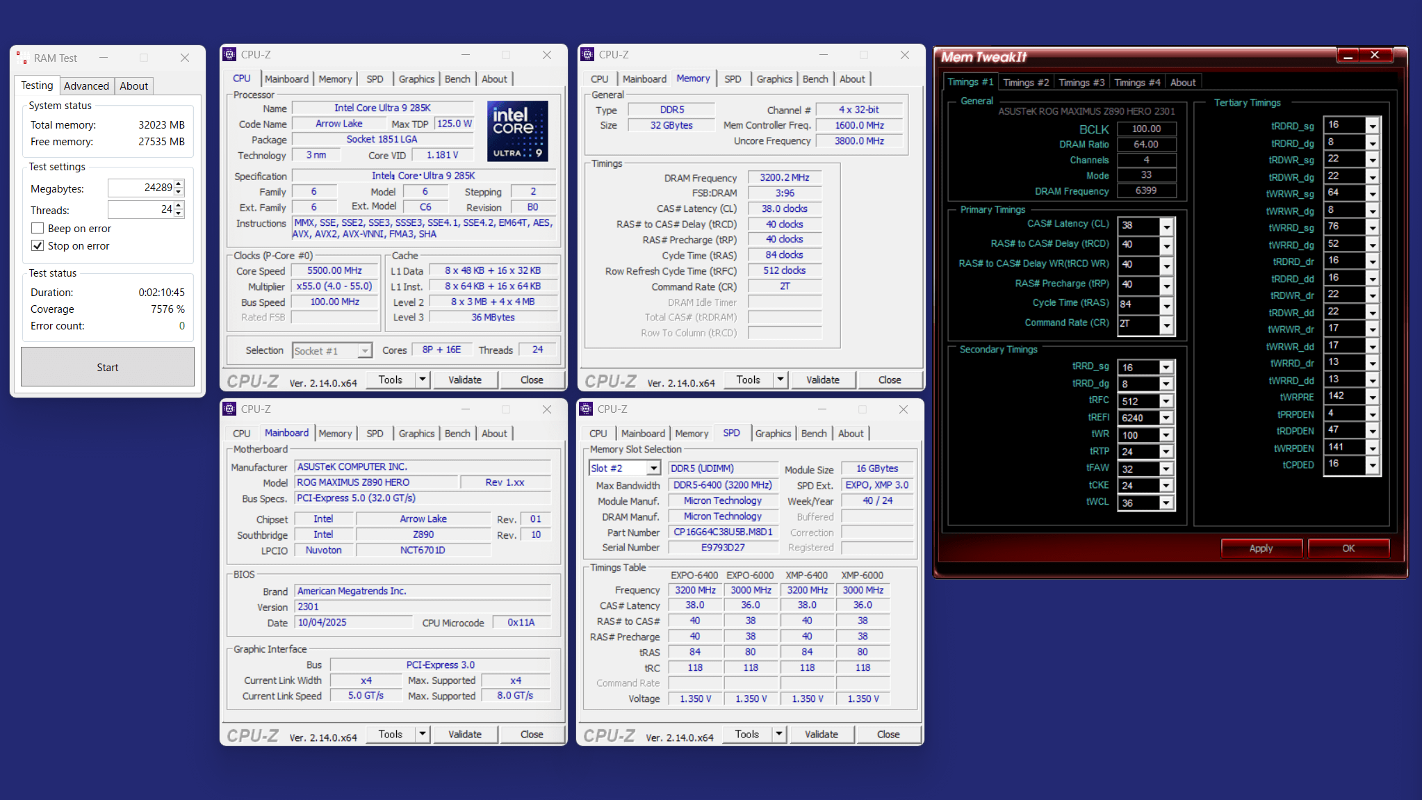 - 16GB×2枚組みDDR5 UDIMMでメモリ周波数6400MHz/CL32が安定動作