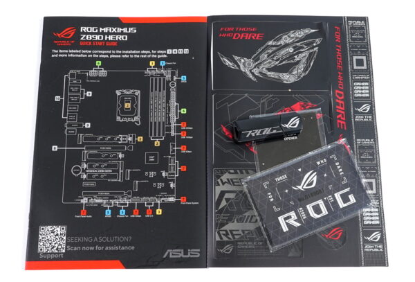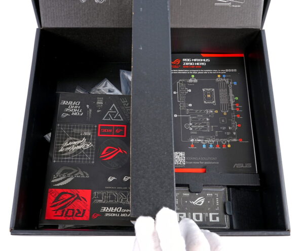 まずは「ASUS ROG MAXIMUS Z890 HERO」を開封して各種付属品をチェックしていきます。