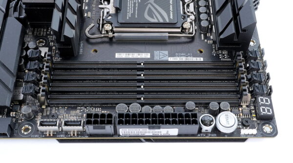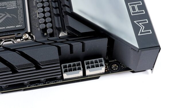最大で24コアとなるIntel Core Ultra 200SシリーズCPUを組み合わせても安定した大電力の供給が行えるように、「ASUS ROG MAXIMUS Z890 HERO」はEPS電源端子として8PIN×2を搭載しています。