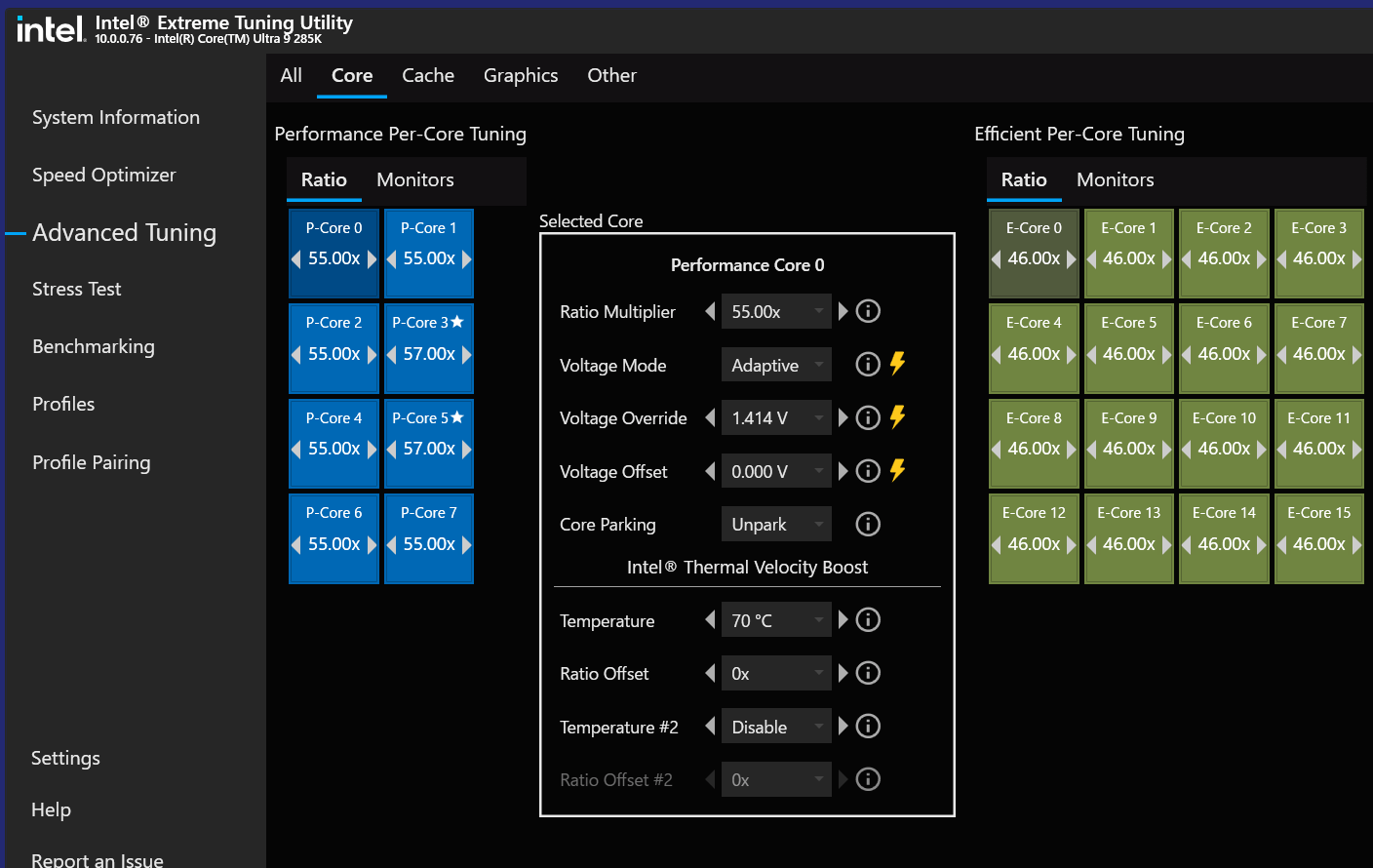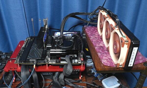市販のAIO水冷クーラーやDIY水冷など環境を選ばず、VRM電源周りは標準装備のまま、Core Ultra 9 285Kの定格設定はもちろん、電力制限解除のOCでも問題なく運用できます。