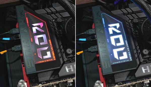 「ASUS ROG MAXIMUS Z890 HERO」のリアI/Oカバー上には”I/O ZONE Polimo Lighting II”と呼ばれる、PMMA(アクリル)製ネームプレートの微細構造を利用し、異なるパターンを表示できる新たなイルミネーションが搭載されています。