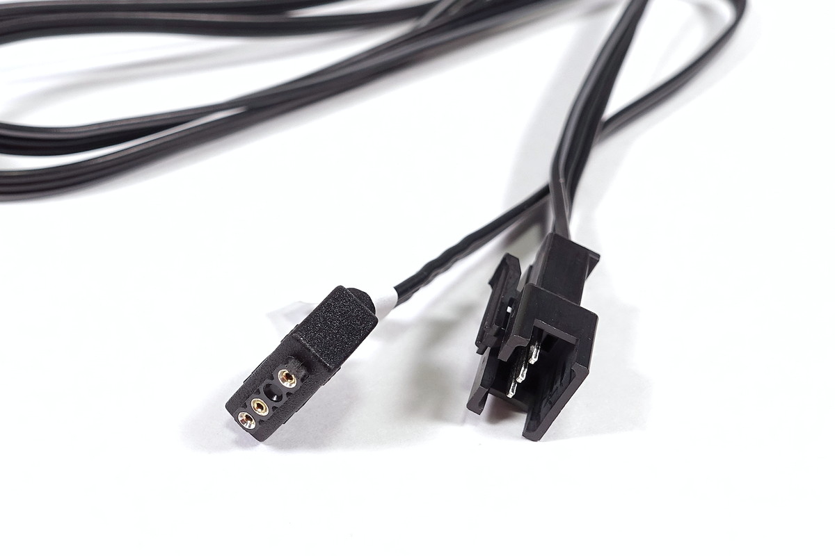 付属するARGB対応LED延長ケーブルは、VG-D型汎用3PINをロック付き3PINコネクタに変換するケーブルです。