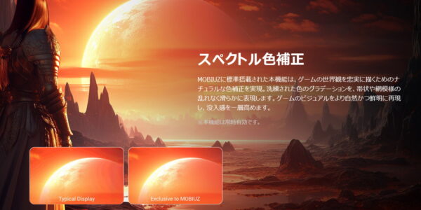 「MOBIUZ EX271UZ」は、ゲームジャンルではなく”ゲームアートスタイル”に着目し、同社が独自のカラー最適化を施したファンタジー、Sci-Fi、リアリスティックという3つ画質モードを使用できます。