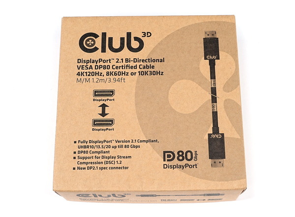 「Club3D 双方向 DisplayPort2.1ケーブル VESA DisplayPort UHBR DP80認証取得」(以下、Club3D CAC-1091)は、DisplayPortの最新規格であるDisplayPort2.1に対応したビデオケーブルです。
