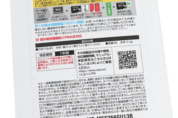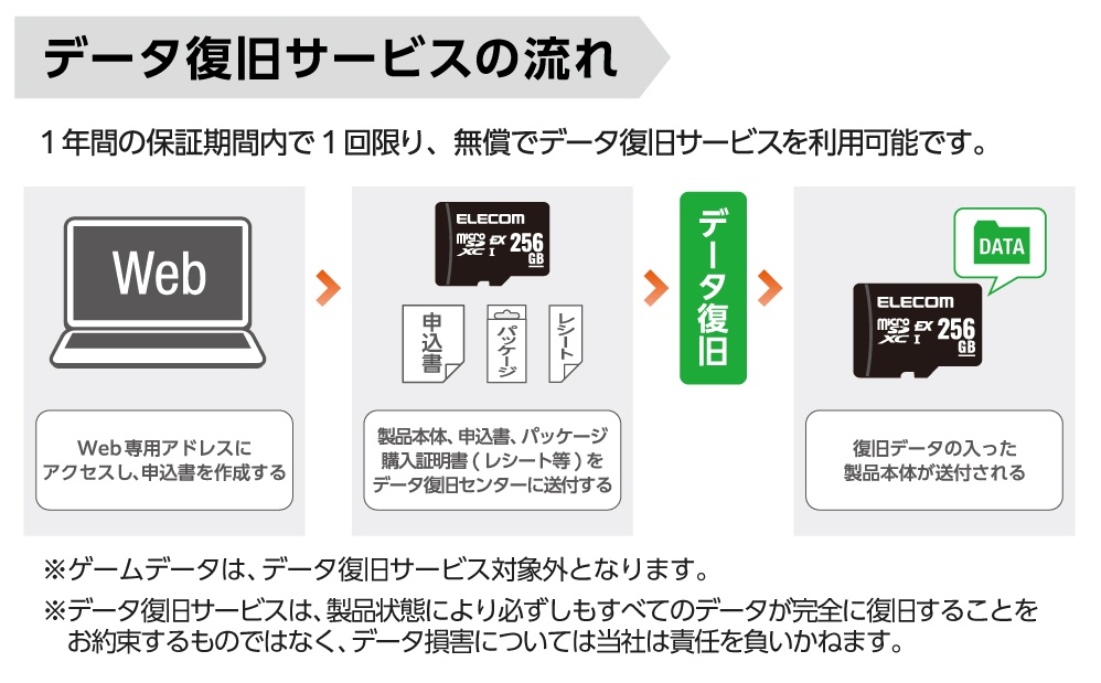 「エレコム SD Express対応microSDカード」はデータ復旧サービスにも対応しています。